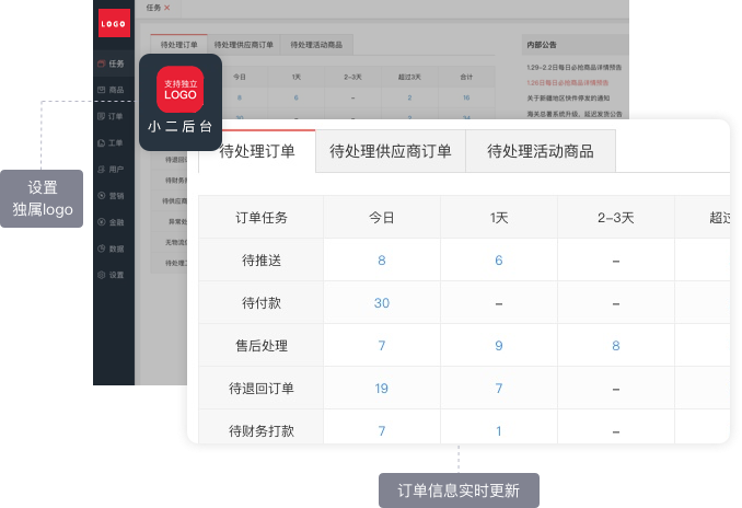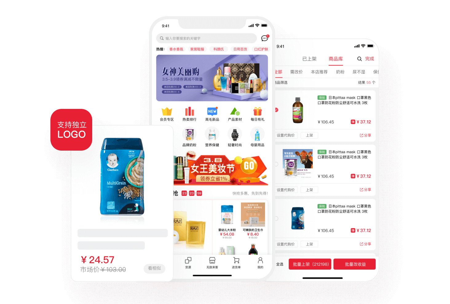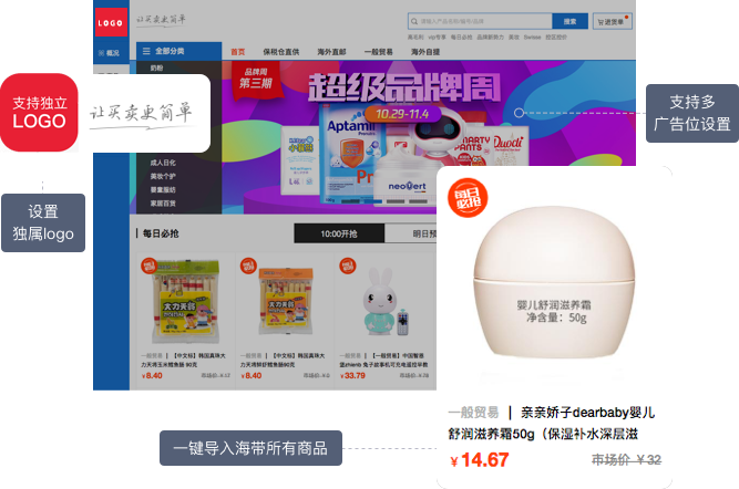 支持一键导入霖芮所有商品,支持设置为独属于自己的logo,支持广告位置的设置,支持登录页下方仿官网独特设计。让你的想法变为事实,让你打造属于你自己的专属品牌。